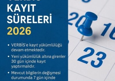 - Yıllık çalışan sayısı 50’den fazla olan veya yıllık mali bilançosu 100 milyon TL’yi aşan şirketler, 2026 yılı içinde VERBİS’e kayıt yaptırmak zorundadır.